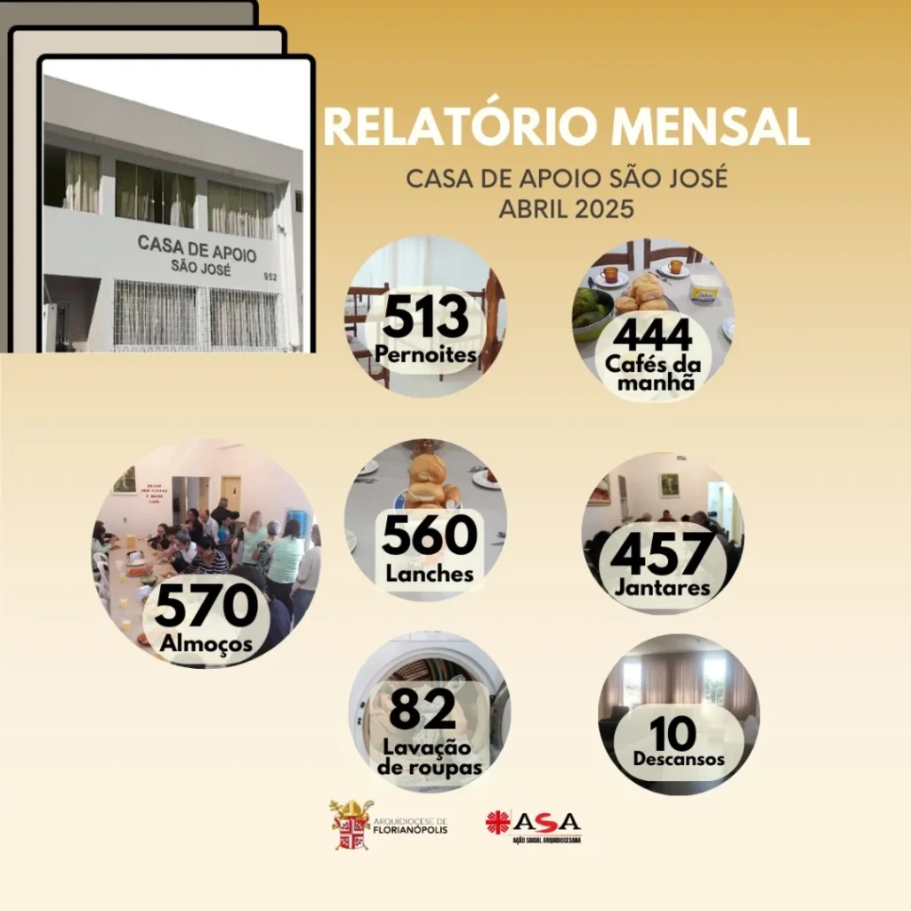 O Conselho Administrativo da Casa de Apoio São José, na pessoa do seu coordenador, Pe. Almir José de Ramos, divulga o relatório de atividades referente ao mês de Abril de 2025.