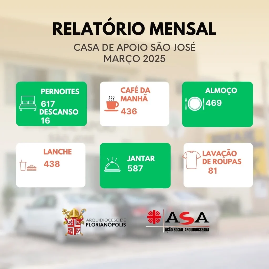 O Conselho Administrativo da Casa de Apoio São José, na pessoa do seu coordenador, Pe. Almir José de Ramos, divulga o relatório de atividades referente ao mês de Março de 2025.